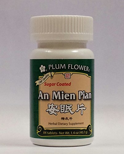 -. Binding : Health and Beauty -. Brand : Plum Flower -. EAN : 0739934839218 -. Feature : Aids Insomnia. / Chinese formula to cool liver hat, reduce stress and calm mind, encouraging sleep. -. IsAdultProduct : 0 -. Label : Plum Flower -. LegalDisclaimer : While we work to ensure that product information is correct, manufacturers may alter their ingredient lists. Actual product packaging and materials may contain more and/or different information . We recommend that you do not solely rely on the information presented and that you always read labels, warnings, and directions before using or consuming a product. For additional information about a product, please contact the manufacturer. Content on this site is for reference purposes and is not intended to substitute for advice given by a physician, pharmacist, or other licensed health-care professional. You should not use this information as self-diagnosis or for treating a health problem or disease. Contact your health-care provider immediately if you suspect that you have a medical problem. statements regarding dietary supplements have not been evaluated by the Food and Drug Administration and are not intended to diagnose, treat, cure, or prevent any disease or health condition. -. Manufacturer : Plum Flower -. MPN : Plu-0552 -. PackageQuantity : 1 -. PartNumber : Plu-0552 -. ProductGroup : Health and Beauty -. ProductTypeName : HEALTH_PERSONAL_CARE -. Publisher : Plum Flower -. Studio : Plum Flower -. Title : An Mien Pian - Peaceful sleep - Plum Flower -. UPC : 784672308960