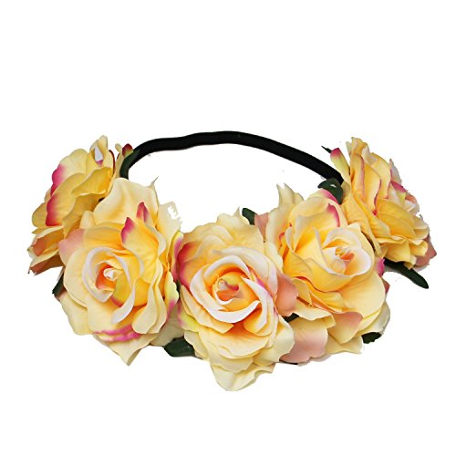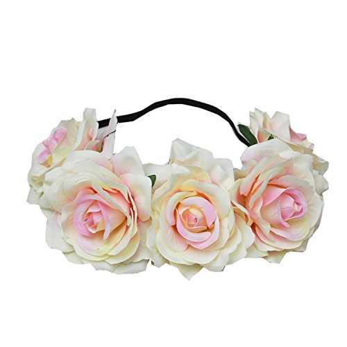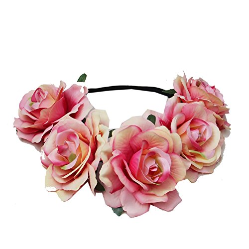 Product Description Material: Polyester Size:Diameter: about 7 inch The headband have 5 big flowers.(approx 3.5" x 3.5") It fits most heads size,easy and comfortable to wear. Floral halo headpiece is appropriate for any occasion, such as festivals, wedding, party, beach, snapshot, etc