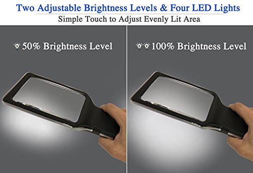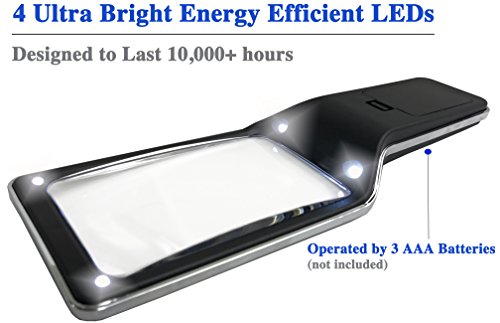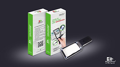 MagniPros 3X Large Wide Horizontal Handheld Magnifying Glass with 4 Ultra Bright Built-in LED Lights & 2 Adjustable Brightness Levels