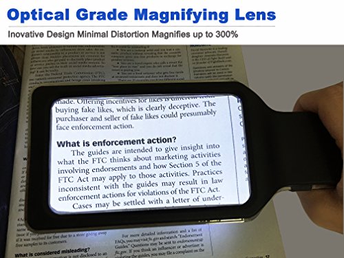 ★ LARGE & WIDE HORIZONTAL ACRYLIC LENS: The rectangular lens especially simulated the way we naturally view things, the magnifying lens covers large viewing area without having your hands move all the time, lens is measured 4.35"x 2.7" and magnifies up to 300%.