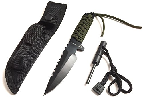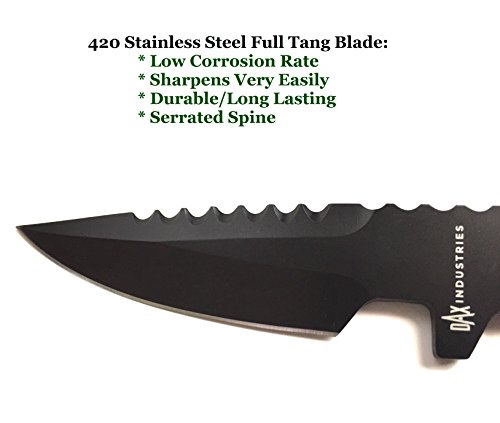 DAX Industries Fixed Blade Survival Knife With Fire Starter and Whistle, Heavy Duty 550 Paracord Handle, 4 Inch Full Tang Blade, 420 Stainless Steel, Whistle Built Into Fire Starter, Protective Sheath