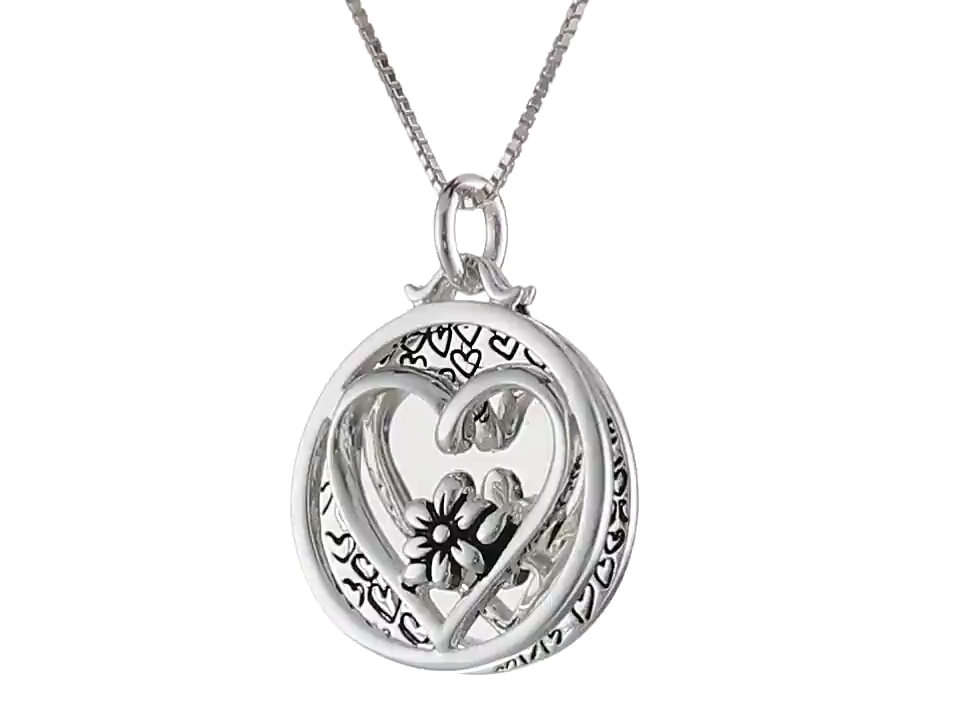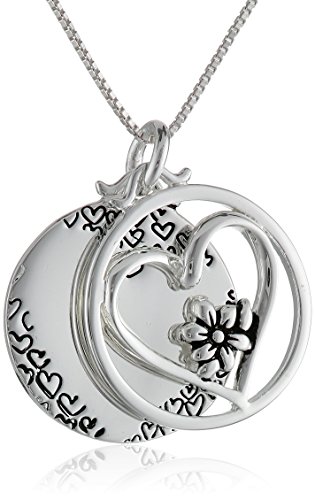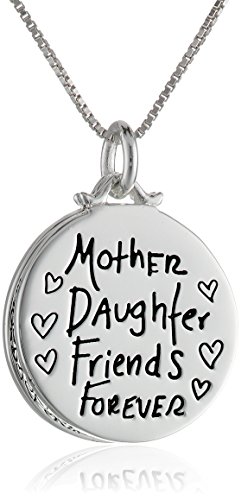 Sterling Silver "Mother Daughter Friends Forever" Reversible Two-Piece Heart and Flower Necklace, 18"