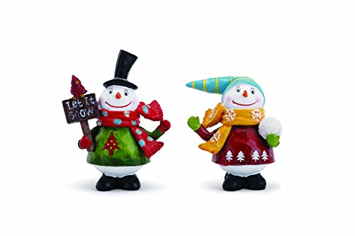 - Sold as a set of two (2) assorted snowman figurines all bundled up in a sweater and scarf