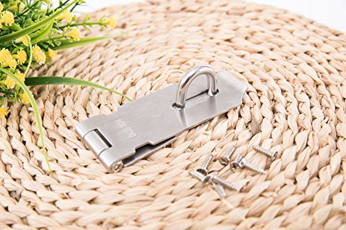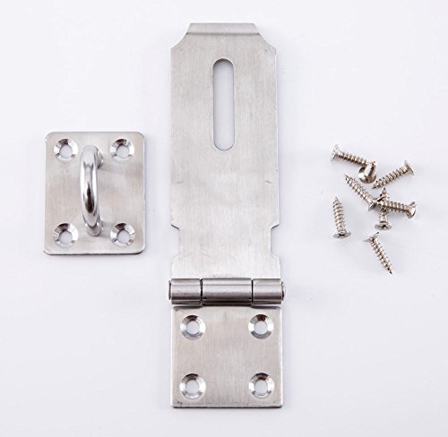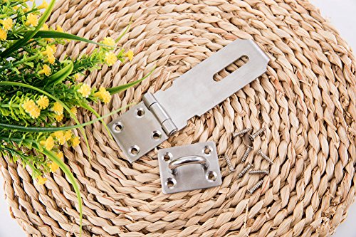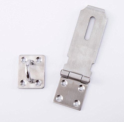 Mini Skater SUS 304 Stainless Steel Brushed Nickel Heavy Duty Padlock Hasp Staple Safety Door Bolt Latches Furniture Door Buckle Drawer Clasp Gate Lock Latch Set , 5mm Screw Hole (5.7 Inch Length)