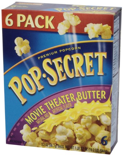 -. Binding : Grocery -. Brand : Pop Secret -. EAN : 0023896577005 -. Feature : 21-ounce boxes with 6 bags each / Made with premium whole grain popcorn and big butter flavor / Cholesterol free; good source of fiber / Convenient microwave-ready bags / Fresh-popped fun for the whole family; made in the United States -. IsAdultProduct : 0 -. Label : General Mills -. Manufacturer : General Mills -. Model : cfuda -. MPN : 57706 -. PackageQuantity : 1 -. PartNumber : 57706 -. ProductGroup : Grocery -. ProductTypeName : GROCERY -. Publisher : General Mills -. Studio : General Mills -. Title : Pop Secret Popcorn, Movie Theater Butter, 6 pk, 3.2 oz -. UPC : 023896577005