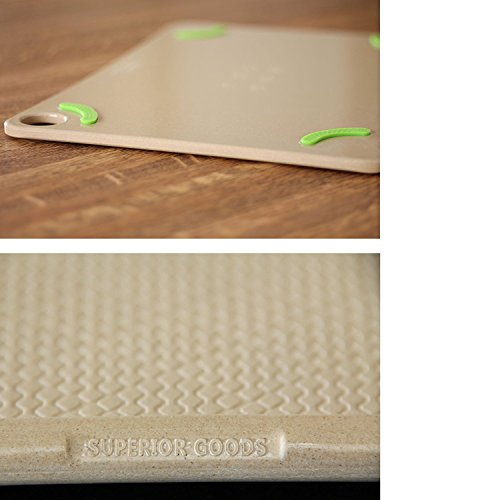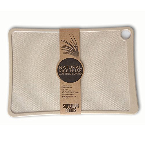 ENVIRONMENTALLY SAFE-This cutting board is made from rice husks which would normally be burned and emit carbon dioxide to the earth. This board is also biodegradable.