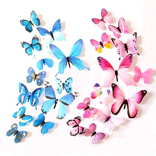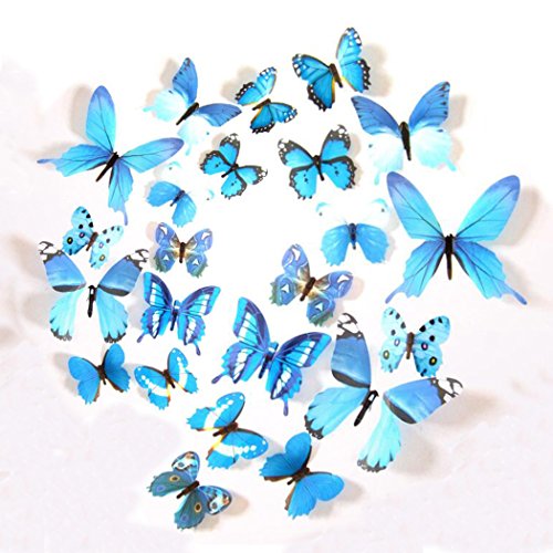 -. Feature : High-quality die-cut vinyl, durability, waterproof, general can keep 3-6 years! / 3D butterfly stickers set: artificial butterfly stickers with 4 kinds of sizes,looks likes real butterfly / Better than wallpaper, wall stickers are a perfect way to decorate your room and express yourself. Color: show as the picture! / Good decoration gadgets: they can be applied to decor a theme party, butterfly museum embellishment, children room, garden parties, photography background, Christmas, wedding, birthday, etc. / Good handicraft works: each one is unique and beautiful, designed with adhesive sticker to help attach to the wall; With magnet in each butterfly's abdomen as well,easily removed and will not damage walls.