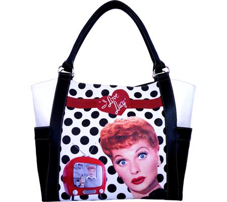 I Love Lucy Polka Dot Large White Tote Handbag, LU814
