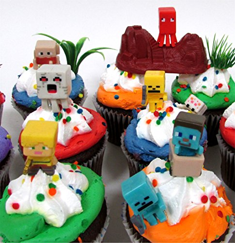 -. Title : MINECRAFT 24 Piece Birthday CUPCAKE Topper Set Featuring Mini Minecraft Figures and Decorative Themed Accessories, Figures Average 1/2" to 1" Inch Tall