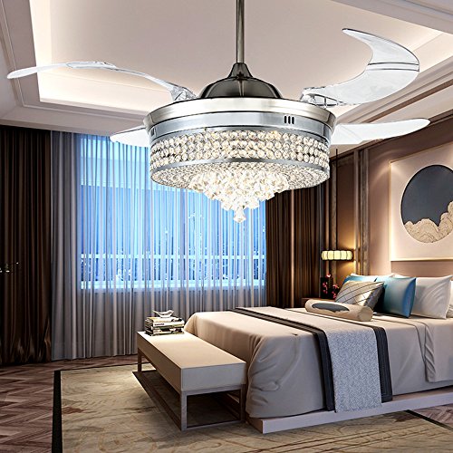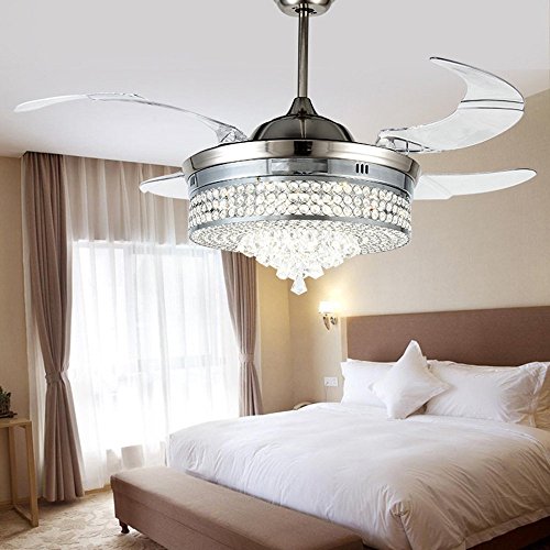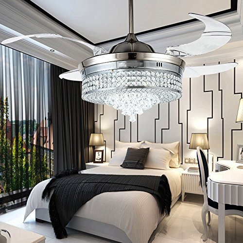 Remote Ceiling Fan is Made of High QualityMetal Motor Rotates Without Noise+Acrylic Transparent Retractable Blades+Elegant Crystal Carving Process Lampshde