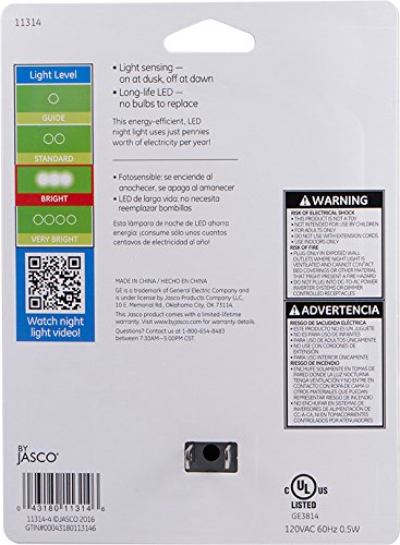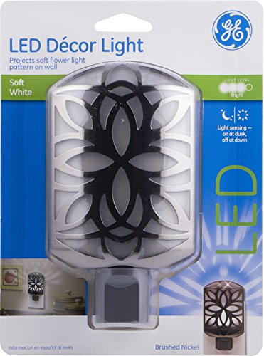 Use the GE LED Décor Night Light to light up any room with your personal style. This night light features an intricate flower design that reflects a soft flower light pattern on the wall when lit. With light sensing technology, it turns on automatically at dusk and off at dawn. The long-life LEDs mean no bulbs to replace. This energy-efficient, LED night light uses just pennies worth of electricity per year! This night light is intended for indoor use only. It comes with a limited lifetime warranty.Feature