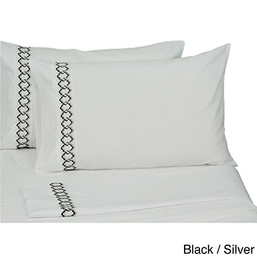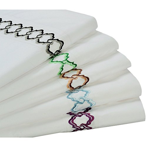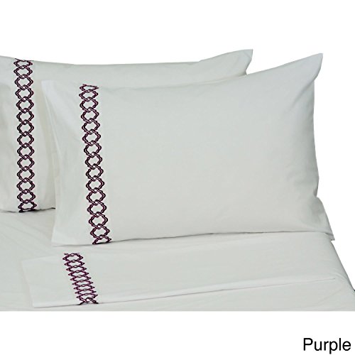 Egyptian Cotton Percale 300 Thread Count Embroidered Deep Pocket Sheet Set Cal King Dark Blue-Blue