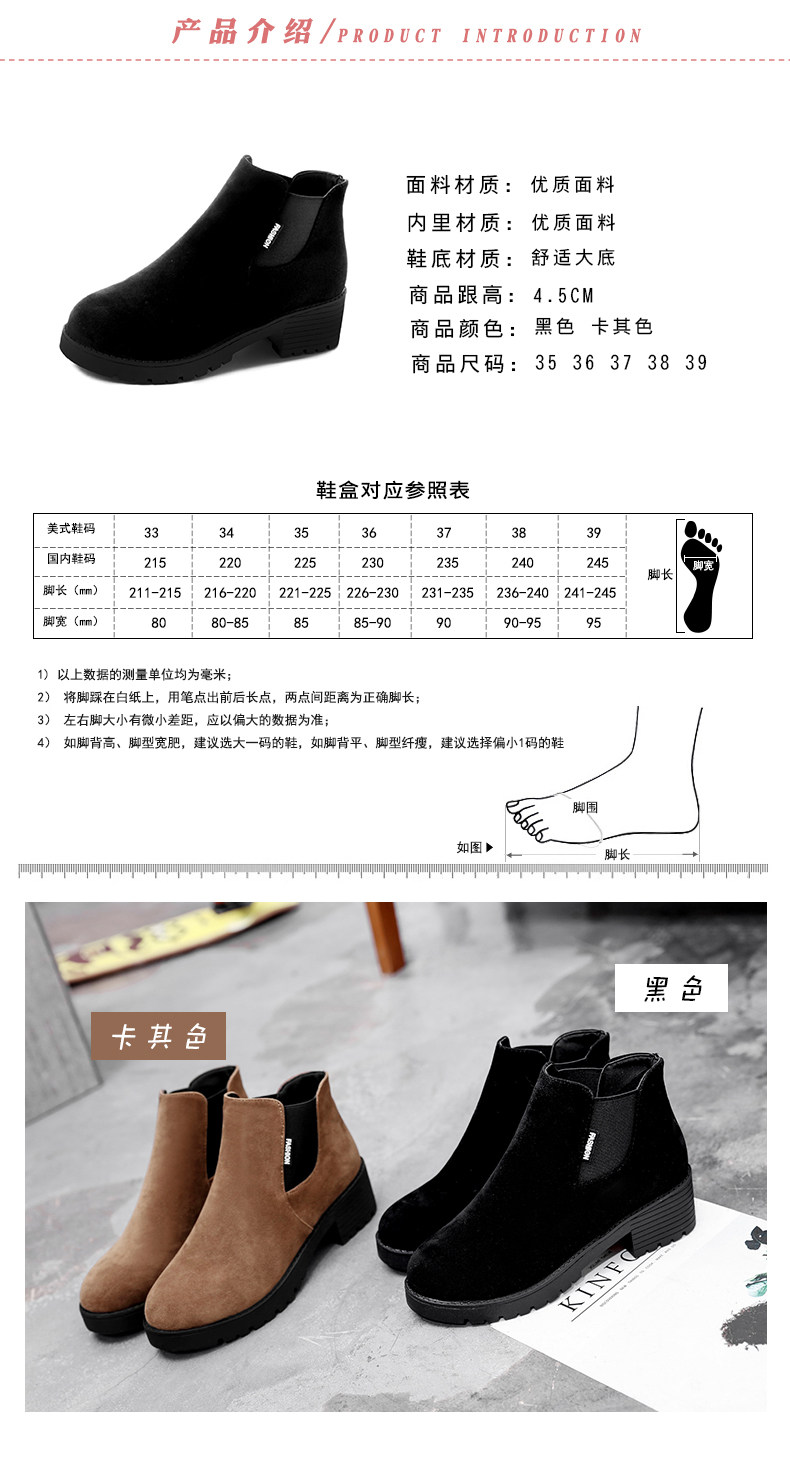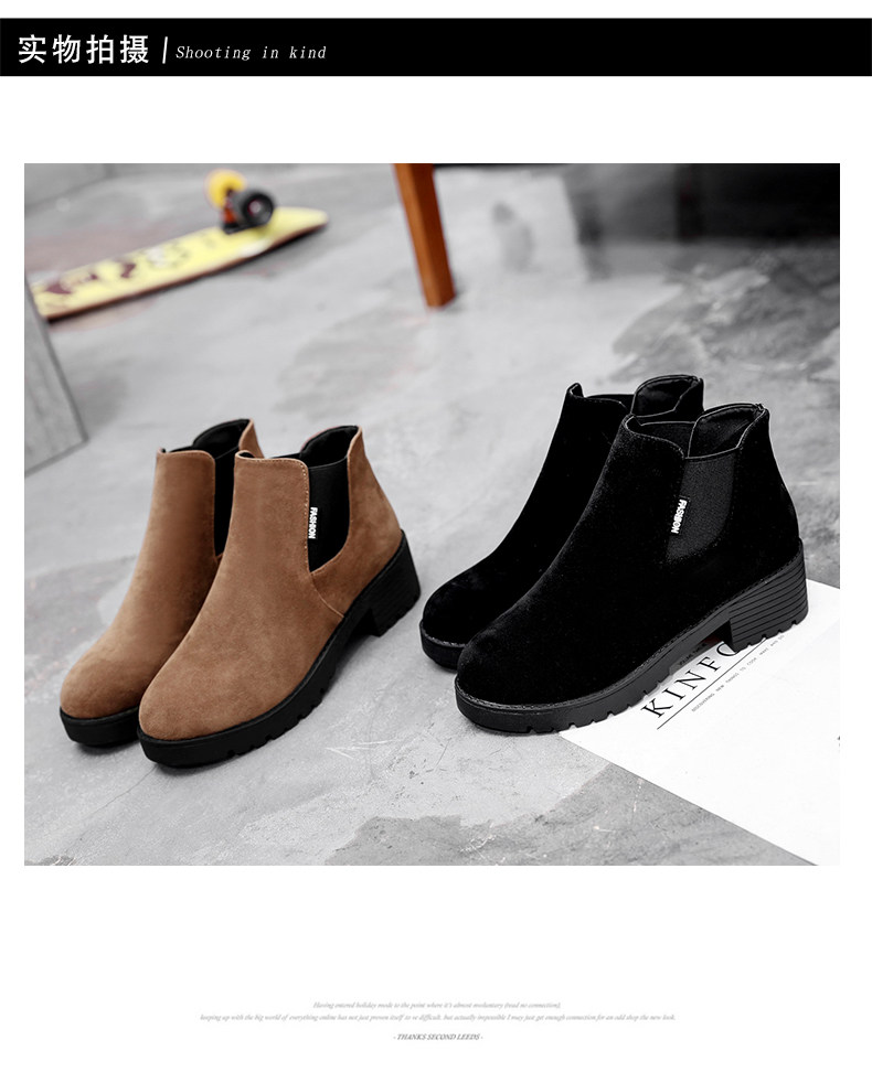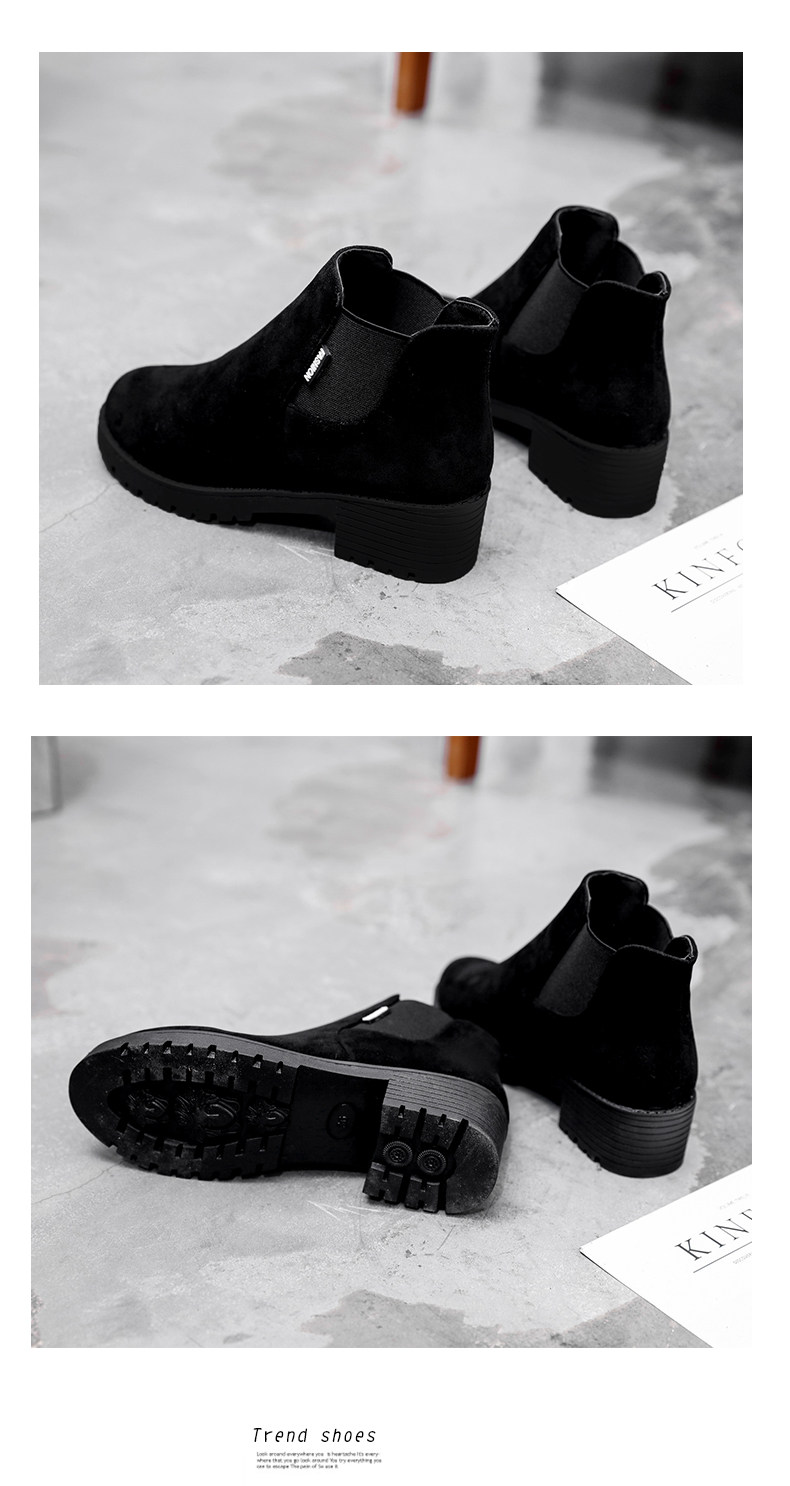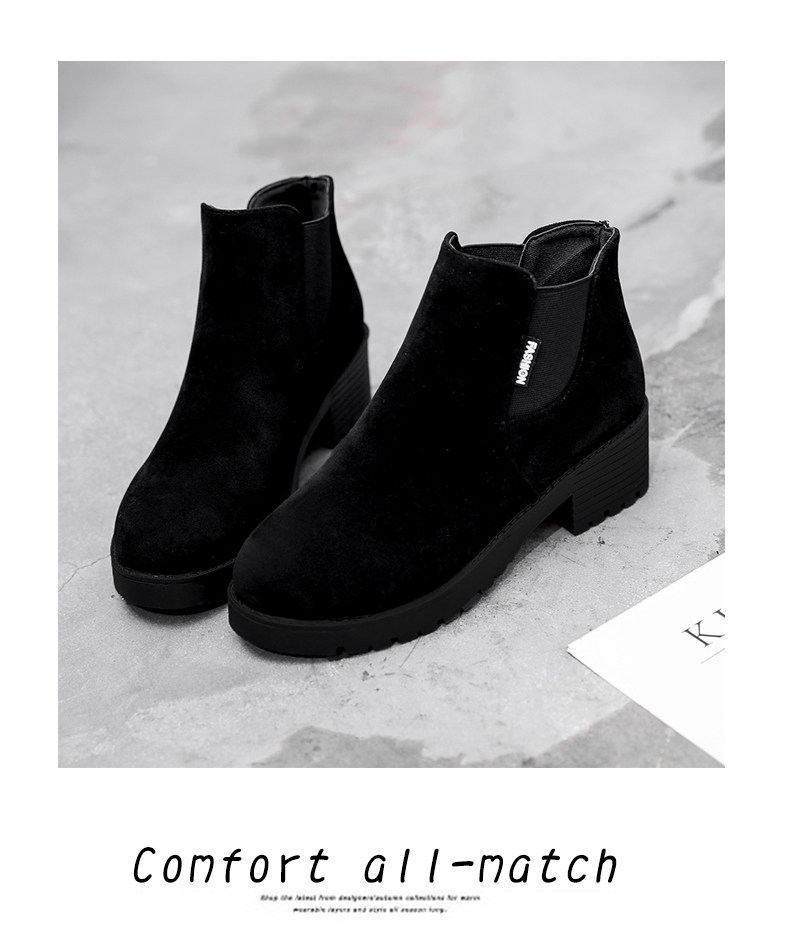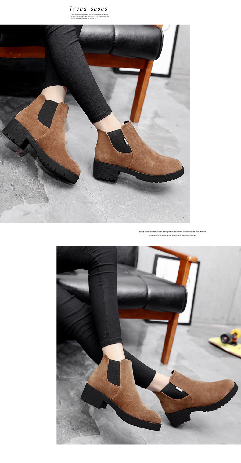 韩版粗跟切尔西靴女秋冬季新款圆头中跟粗跟短靴百搭女鞋子
