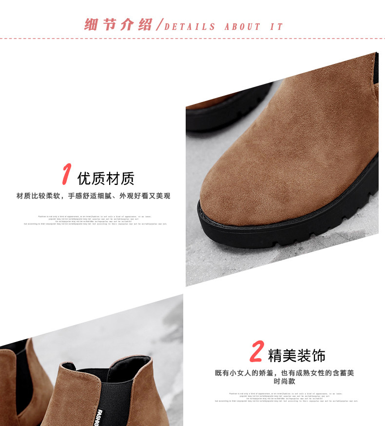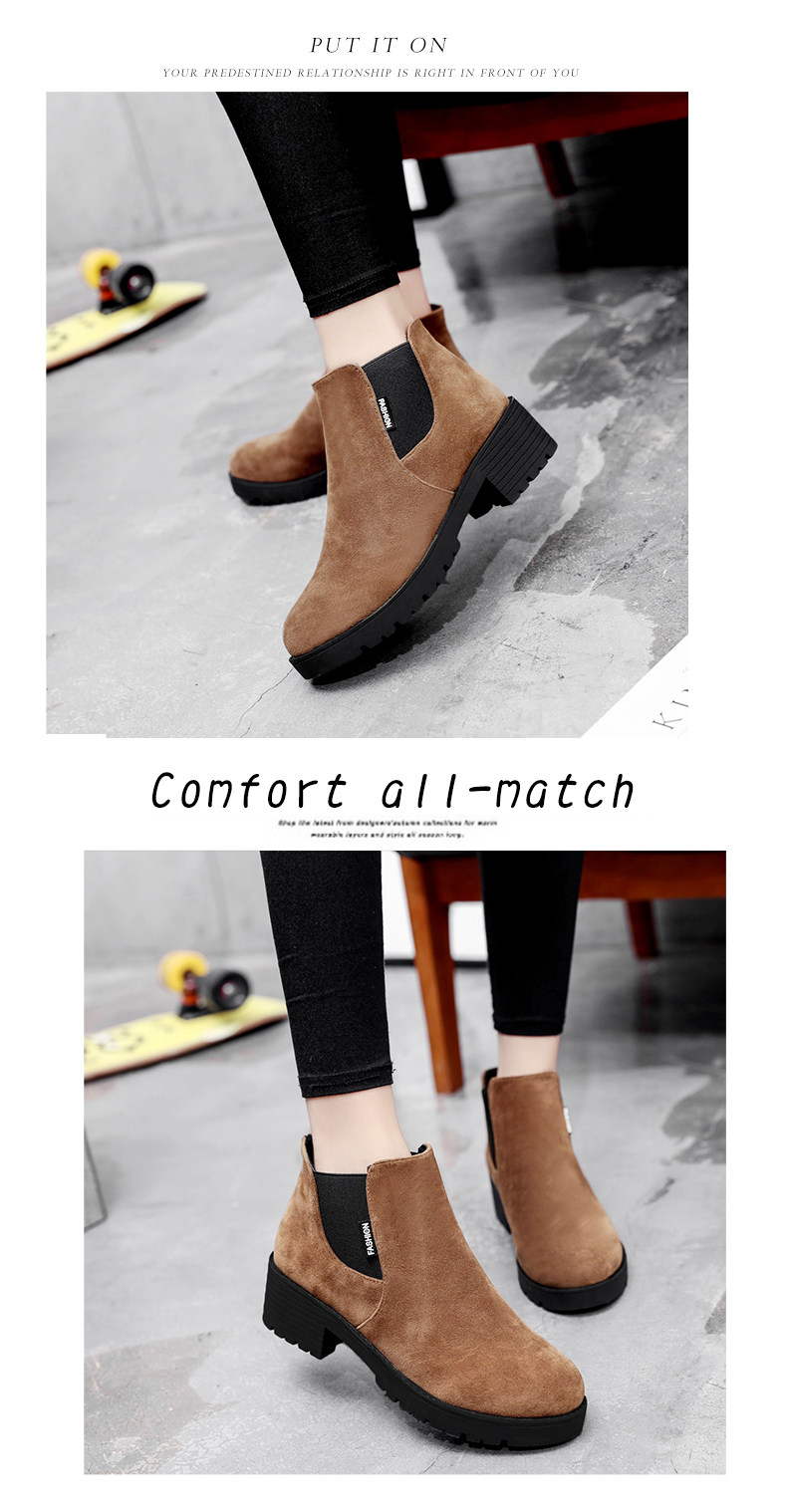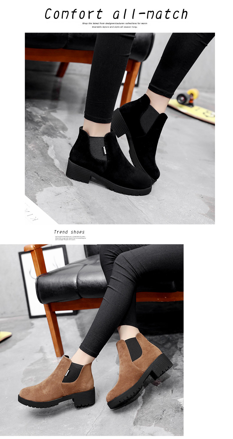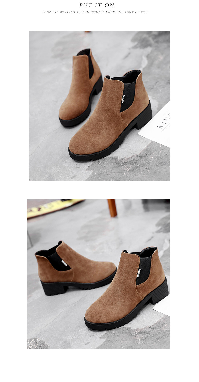 韩版粗跟切尔西靴女秋冬季新款圆头中跟粗跟短靴百搭女鞋子