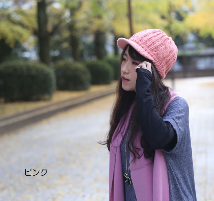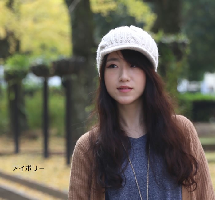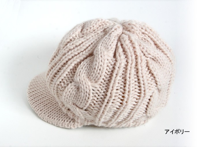 ・キュートなケーブル編みのニット帽 ・つば付きでざっくりかぶれるニット帽です。 ・見た目はルーズな印象のニット帽ですが、しっかりと頭にフィットするので、脱げてしまう心配なく使えます。 ・落ち着いた色のニット帽なので、冬のコートと相性抜群 ・オシャレさんの必須アイテム、冬のニット帽です♪
