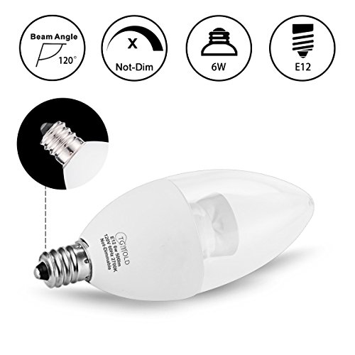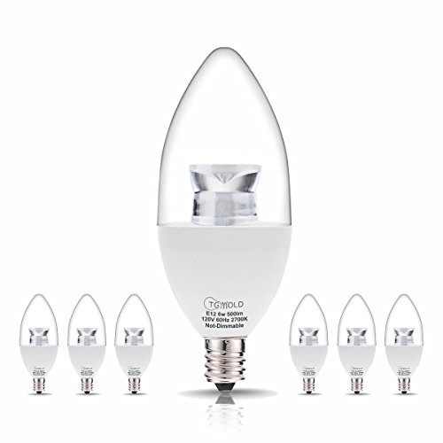 TGMOLD Candelabra LED Bulbs, 60Watt LED Light Bulbs Equivalent, 2700K Warm White, Decorative Candle Light Bulbs E12 Base, 120 Degree Beam Angles, 500Lumens, Chandelier Bulb, 6PACK