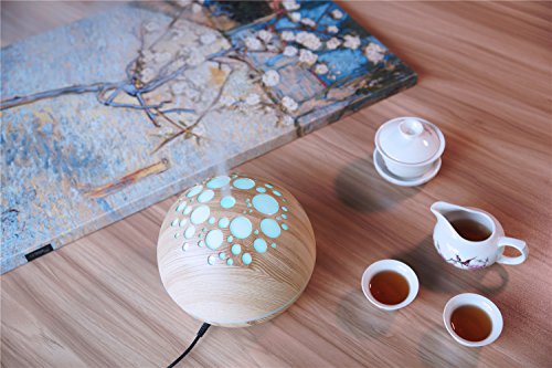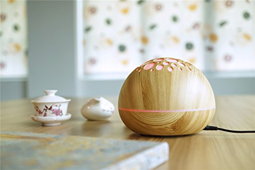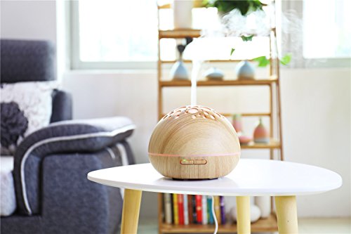 300ml Cool Mist Humidifier and Aromatherapy Essential Oil Diffuser Ultrasonic with LED Night Light and Time Setting for Bedroom Babes Room Office Yoga Spa (light wood grain)