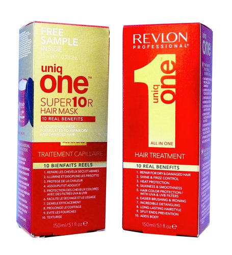 Revlon Uniq One Superb New Revlon Product... Uniq ONE is a fantastic leave-on mask that offers TEN real benefits to ensure hair is left healthy beautiful and protected. Uniq ONE assists the repair of dry damaged hair controls frizz and shine provides heat protections promotes silkiness and smoothness stops hair color from fading with UVA and UVB filters makes styling with brushes and hot styling tools easier contains detangling qualities provides long-lasting styles prevents split ends and adds voluminous body.Feature