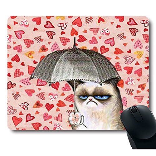 Cat Holding Umbrella in Pink Heart Rain BackGround Mouse Pad