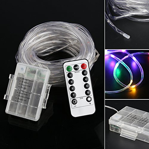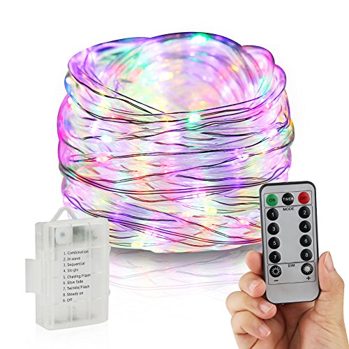 LED Rope Lights, Accmor Battery Operated Waterproof String Lights with Remote Timer, 33Ft Firefly Lights Fairy Lights for Outdoor Indoor Home Decoration(Multi-color)