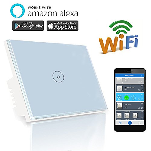 Smart WiFi Light Switch Works with Amazon Alexa Echo, BOSCHENG Touch Wall Switch Panel 110-240V, Remote Control Your Devices with Smart Phone from Anywhere (1 Gang)