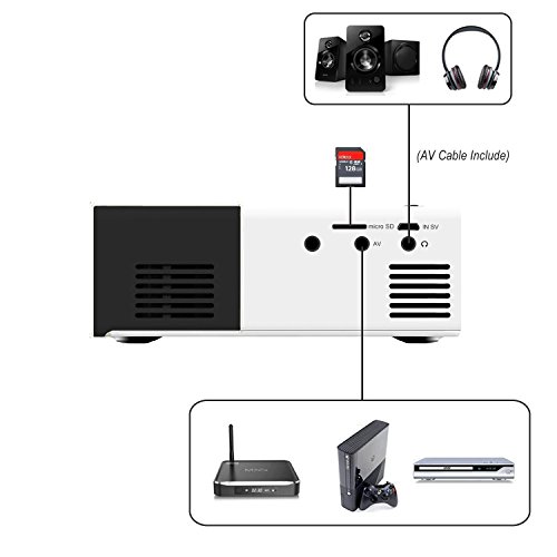 2017 update smallest mini led projector for video game, movie night in your bedroom, big screen home theater. USB input port is only for flash drive and hard drive! To connect the mini projector with iPad or smartphone, you need a lightning to HDMI adapter/ MHL to HDMI adapter or wireless HDMI adapter. Notice: Deeplee DP300 is NOT HD and NOT RECOMMENDED for PPT or business presentation, need use in DARK environment. Imaging unit: LCD Native resolution: 320x240 pixels Brightness:50 ANSI Lumen (standard brightness 400~600 Lumen) Color: 16770K Contrast: 800:1 Projection size: 24-60 inches Aspect ratio: 4:3 Projection distance: 1-3.8M Projection ratio: 2.7:1 Total power: 24W(12V, 2A); Product size: 5 x 3.4 x 1.9in Bare device weight: 0.29 KG Operating Mode: Manual and remote control operated Supported language: Chinese, English, French, etc Input Interface: AV, USB, SD card, HDMI Output Interface :Loud speaker, Stereo headphone Video file: Full Format Support; Audio file: MP3/WMA/OGG/AAG/FLAC/APE/WAV and so on. Seven kinds of sound effects + SRS Image file: Support Common format like Jpeg, BMP, PNG and so on. Support image scaling; 360 spin, be able to browse image in full screen Package included 1X LED Projector Cinema Theater 1X Power adapter 1X Remote control 1X AV cable 1X User ManualFeature