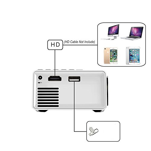 Super Mini Size like a smartphone - Best choice under $55. A Portable Theater / Cinema! With 3.5mm Audio HDMI TF Card Slot USB, Perfect for Holiday Night Entertainment. Support input 5V/2A portable power bank supply(A 5000mAh Power Bank can last 3 hours)