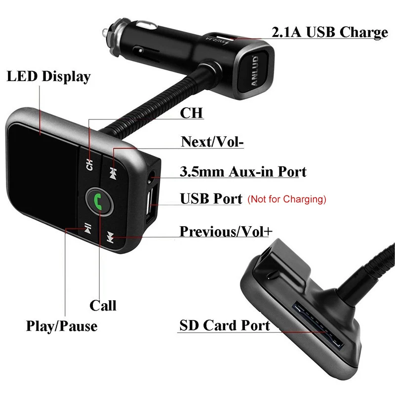 2.Built-in FM transmitter, full frequency: 87.5-108.0MHZ.
