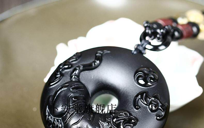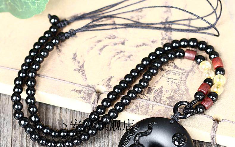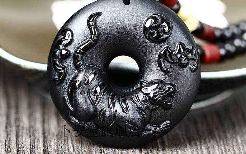 开光12生肖属虎吉祥物龙马乘龟黑曜石龟鹤年年吊坠男女款