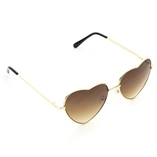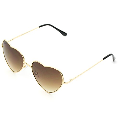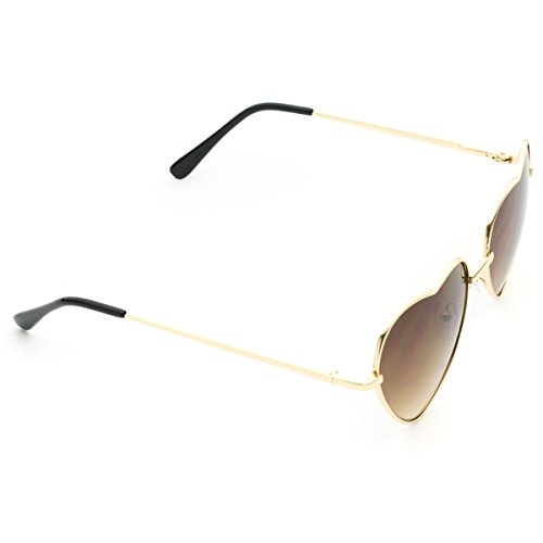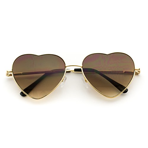 Women Metal Heart Frame Mirror Lens Cupid Heartshape Sunglasses (Gold Frame / Brown Lens, 55)