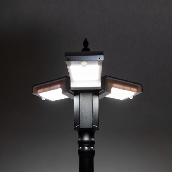 ソーラー照明SIGENL1を3方向設置 ハイクオリティポール使用   ソーラーパネル・LEDライト・  バッテリー一体型