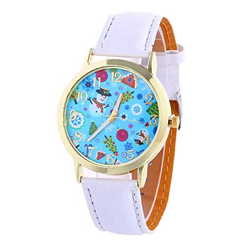 -. Title : MINILUJIA Christmas Tree Santa Claus Snowflake Design 40mm Dial PU Leather Women Watch