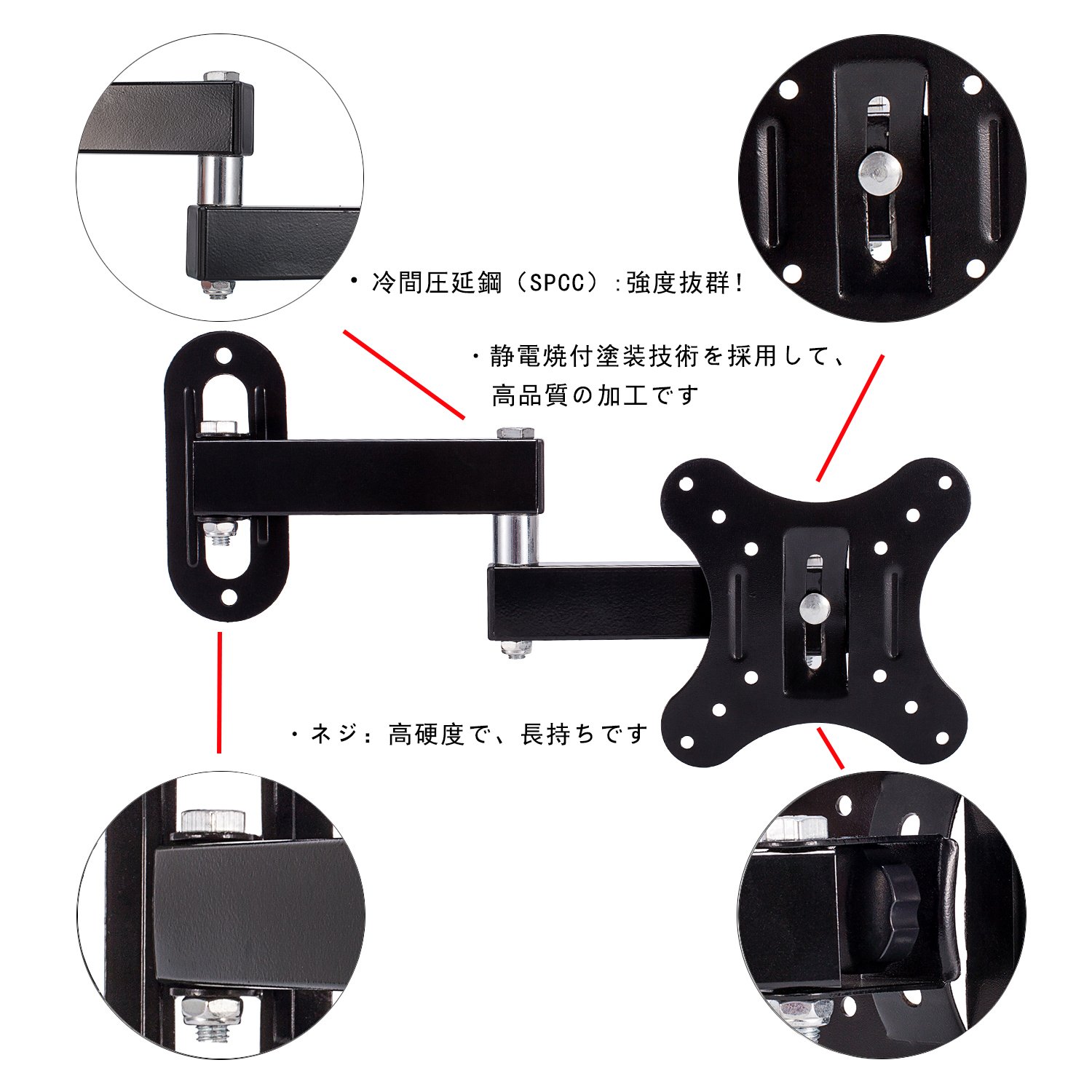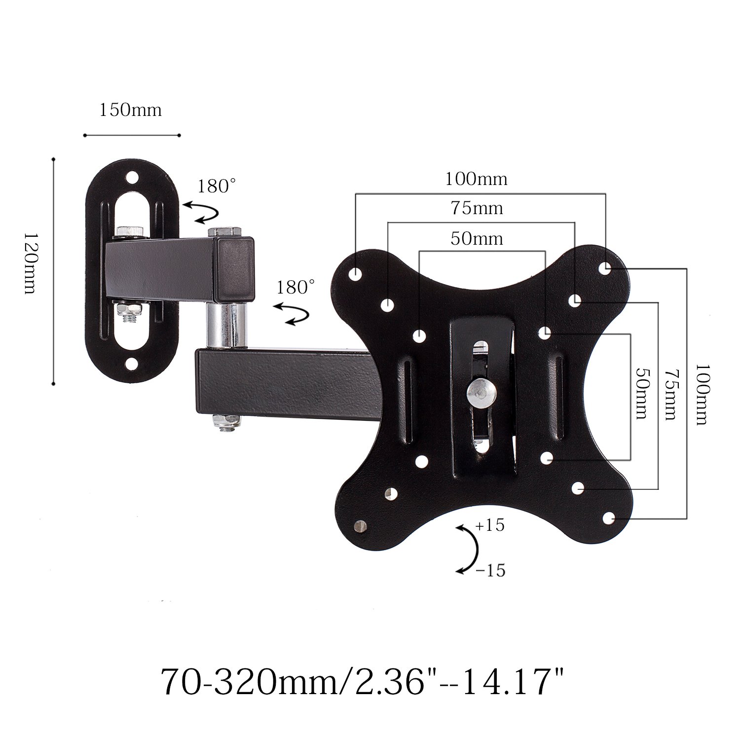 VESA standard: 50 * 50 mm, 75 X 75 mm, 100 X 100 mm