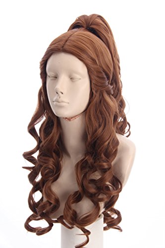 Topcosplay Women Wigs Curly Brown Halloween Costumes Cosplay Wig Wave with Ponytail