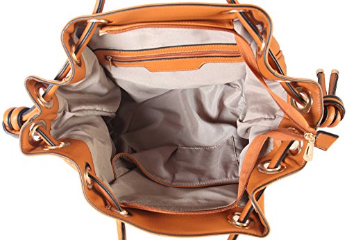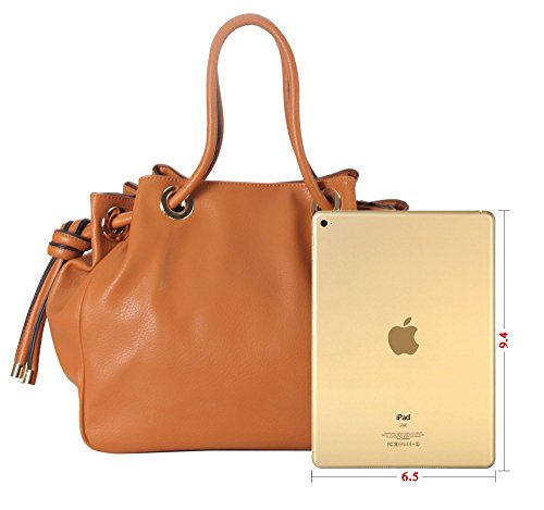 -. Feature : This handbag comes in 6 different colors: Black, Blue, Brown, Pink, Red, and Taupe. / High Quality PU Leather Drawstring Design Large Tote Womens Purse Handbag. / High Quality Fabric Lined Interior with Multiple Interior Pockets. 1 Main Compartment with 1 Zippered Pocket and 2 Open Pockets Inside. 1 Zippered Pocket Outside in the Back. / Approximate Size info: Length 13" x Width 6" x Height 11.4" Material: PU Faux Leather. Top Zipper Closure. / Color showing in other color is to show the different variation angles of the handbag. The actual bag ship, will be the one your purchesed.