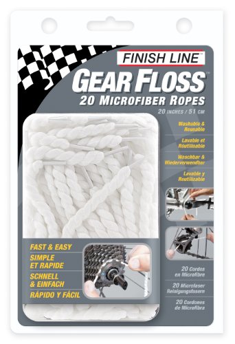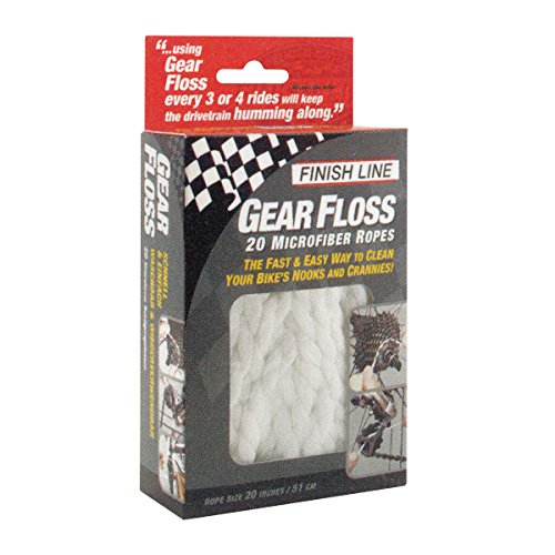 ReleaseDate : 2011-05-01 Studio : Finish Line Publisher : Finish Line Binding : Sports Product Description Finish Line Gear Floss is the ultimate detailing tool! Perfect for cleaning your rear cassette, front chain rings, derailleur pulley wheels, hubs and spindles, brake arms, bottom bracket / crank interface, and more. Gear Floss is made of Microfiber. Microfibers work by attracting, removing and holding grime. Other materials simply move it around. Microfiber does this by capturing dirt, grease and particles inside its star-shaped grooves. Dirt is held deep inside the core of the fiber. Microfibers remove grime better than any other material known to man! Microfiber rope is highly tear-resistant and it is washable. Easy to Use! ? Position floss between gears ? Slide back and forth ? Slide into other hard-to-clean areas like derailleur pulley wheels, hubs and spindles, brake arms, bottom brackets /crank interface, etc. Each Package Contains 20 Ropes Each Rope = 20” / 510mm Length 0