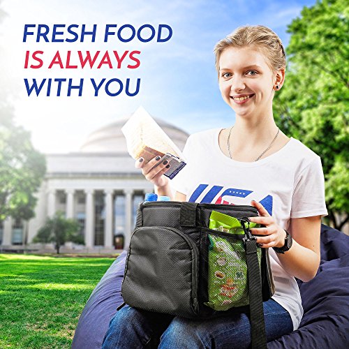 Insulated Lunch Bag - USA Sales Group Lunch Bag Nylon, Soft Cooler Bag For Work, Men, Women Stiff Bottom, With Best 2 Way Zipper Closures, Adjustable Shoulder Strap – Bonus Key Case & e-Book