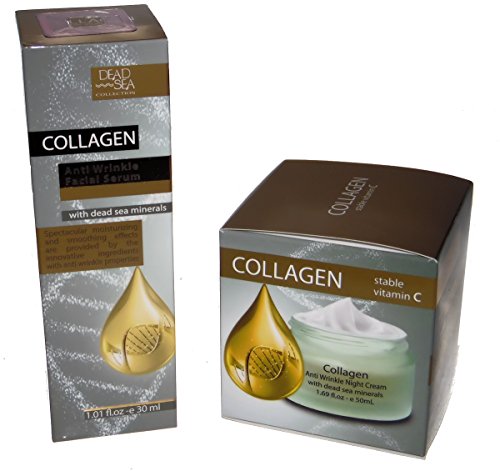 -. Feature : 1 - 1.01 oz Collagen Anti Wrinkle Facial Serum with Dead Sea Minerals / 1 - 1.69 oz Collagen & Vitamin C Anti Wrinkle Night Cream with Dead Sea Minerals / Both contains nourishing Dead Sea minerals and Collagen that helps keep skin smooth & looking youthful.