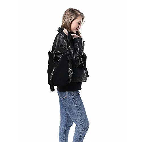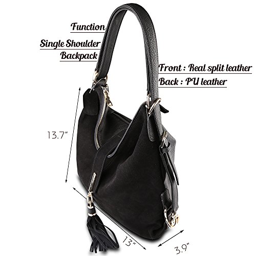 -. Title : Nico Louise Women Purse Backpack Split Genuine Leather Suede Shoulder Bag Tassel Leisure Casual Handbag