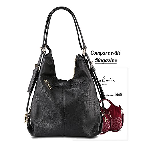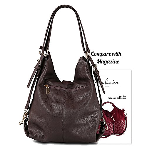 -. Feature : This purse is original designed by Nico Louise. Front side made by split leather (second layer of genuine leather).Back side made by PU leahter.Decorate with top quality gold-tone hardware tassel / Size :13" x 13.7" x 3.9" (WxHxD) Weight:1.98(lb). Can put Magazine inside the bag. / Internal structure :(2)main slot pocket .(2) phone pouches (1)zipper comparment pocket. (1)Interior zipper Slot Pocket .External: (1)zipper pocket in back / Functions :Single shoulder bag, Backpack. Can hold Cosmetic Bag,Wallet,Umbrella,Book,Clothes,and other Daily necessities / * This Purse is fashion urban style, Shoulder belt can be adjusted as a Backpack. Suit for mature ladies ,Suitable for formal & informal occasions like Office,Party,Shopping,Traveling etc...Match different styles clothing. Quality guaranteed
