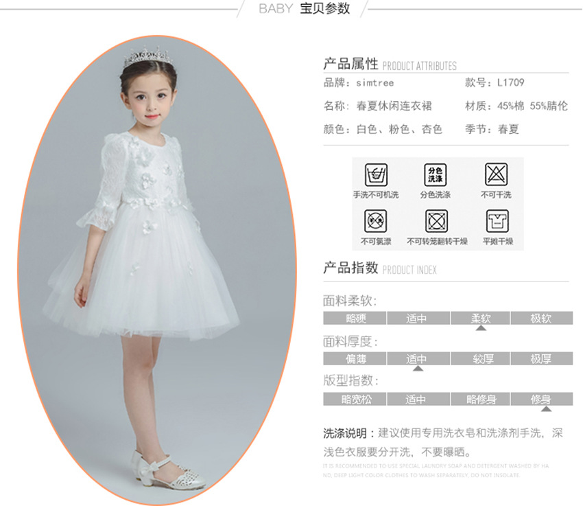 颜色:L1709-中袖订花朵裙-白色,L1709-中袖订花朵裙-粉色,L1709-中袖订花朵裙-杏色