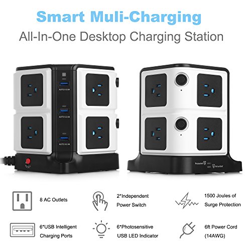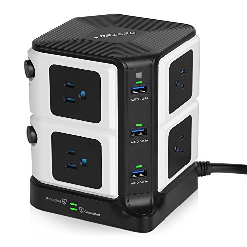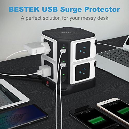 - Exclusive Vertical Desktop Design,BESTEK USB Power Strip is a perfect SPACE SAVER and ideal for charging multiple devices at the home/office/school(only 5.7 inches tall)