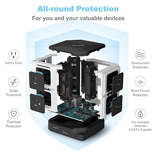- Safety Guarantee:Built-in surge protection(1500 Joules),short circuit protection, overload protection,over temperature protection, over current protection,fire-retardant materials.Built-in Socket SAFETY DOOR to protect kids from unexpected electric shock