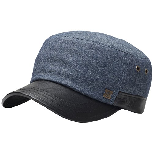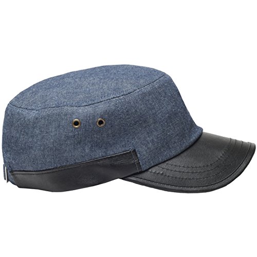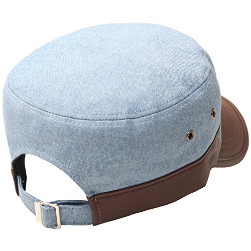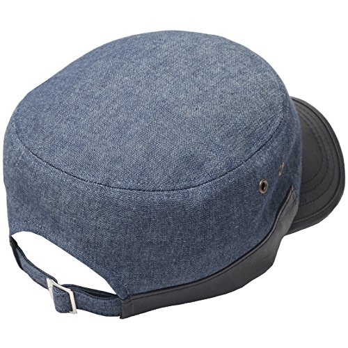 RaOn A69 Hazy Denim Style Faux Leather Design Jeans Feel Army Cap Cadet Military Hat