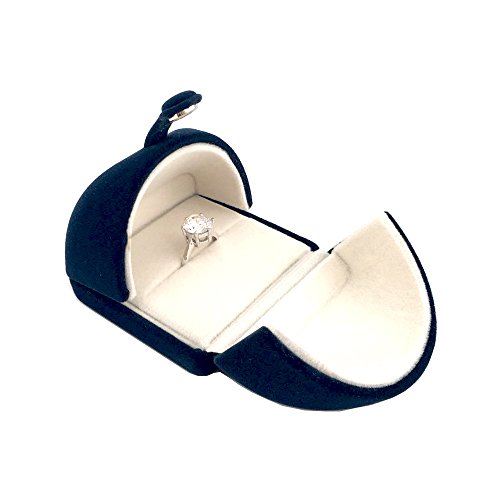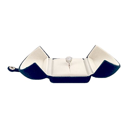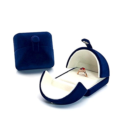 Elegant Ring Box for Engagement Ring Wedding Birthday Present Navy Blue and Soft White Luxurious Velvet Present Store (Ring)
