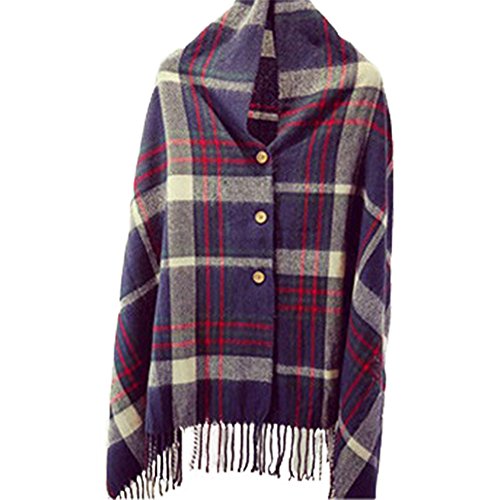 Product Features - Plaid Button Blanket Scarf Shawl is made of soft material, comfortable to touch and stretchy to wear.