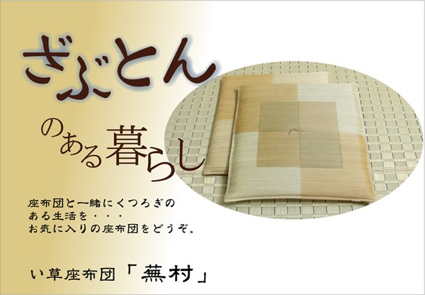 素材:側地=い草(九州産) ※メセキ織 中材=上下)フェルト12mm+中芯)ウレタンフォーム25mm(三層)