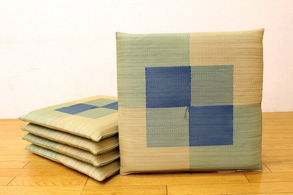 【商品名】 純国産/日本製 捺染千鳥 い草座布団 『蕪村(ぶそん) 5枚組』 ブルー 約55×55cm×5P 【ジャンル・特徴】 黄金色に変化していく、モダン柄いぐさ座布団 イ草 イグサ ■サイズ・色違い・関連商品■ブルー 2枚組■ブルー 5枚組[当ページ]■ブラウン 2枚組■ブラウン 5枚組関連商品の検索結果一覧はこちら 職人が1枚1枚手作業で捺染プリントを施したイ草座布団です。メセキ織という技法で柔らかい肌感触に仕上げました。国産(九州産)のい草を使用しています。一本一本が太く、表皮が厚く繊維がキメ細かいので弾力性があり、耐久性に優れています。い草には空気の自然浄化作用、湿度の調節作用などがあります。また汚れにくく、使用するうちに黄金色に変化し味が出ます。い草に青森ヒバ加工を施しています(抗菌、防臭効果)。中材はウレタンをフェルトでサンドした三層構造で、適度なクッション性があります。※柄のプリントは職人が手作業で描く為、同じ色・柄であっても多少風合いが異なります。■商品スペックサイズ:約55×55cm 5枚組素材:側地=い草(九州産) ※メセキ織 中材=上下)フェルト12mm+中