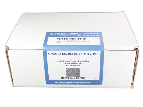 -. Title : Green A7 Envelopes, 5 1/4 x 7 1/4 - 100 Envelopes - Desktop Publishing Supplies™ Brand Envelopes