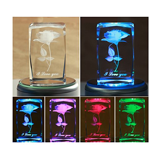 A never fade 3D rose: Storage in crystal, symbolize your forever love. Under the rose, it sculptures "I Love you".
